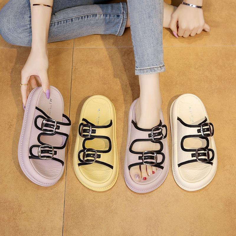 Bequeme Klett-Hausschuhe mit dicker Sohle, Damen tragen im Sommer Strand-Sandalen mit dicker Sohle