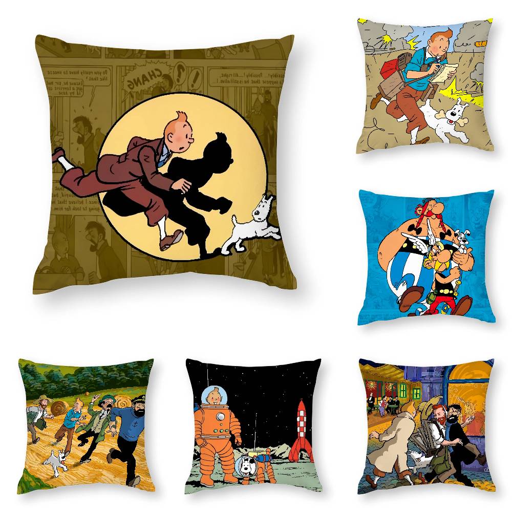 Anime T-Tintines Kissenbezug 3D-Druck Polyesterfaser 40*40cm Zuhause Sofa Dekoration Festivalgeschenk
