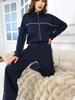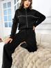 2024 Europäischer & Amerikanischer Freizeitanzug: Langärmiger Cardigan mit halbohem Kragen und Schnürhose mit Streifen