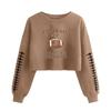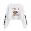 Damen Stilvolles Retro-Print Fußballbauchfreies Langarm-Pullover-Sweatshirt