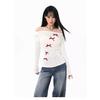 Süße Schleife Strickpullover Frauen Schulterfrei Sexy Langarm Pullover Koreanischer Stil Kawaii Herbst Winter Pullover
