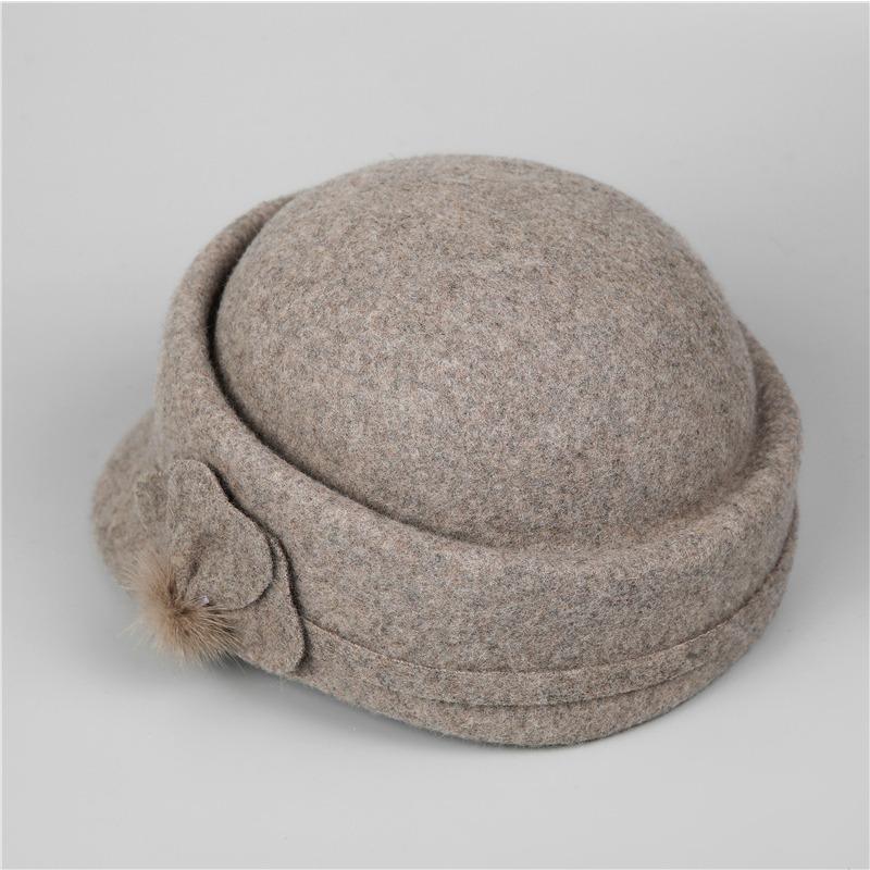 Retro Herbst- und Winter-Damenwolle, elegante dreiblättrige Blume warme kurzkrempige Schirmmütze, kleiner Reiterhut