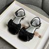 Mädchen Sandalen 2024 Neu Weiche Kinderschuhe Vielseitige Perlen Schleife Offene Zehen Atmungsaktiv Kind Einfach Niedrige Absätze Weinrot Prinzessin Schuhe
