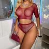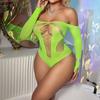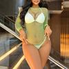 Sexy underwear, sexy mesh, fruit green women's short-sleeved hollowed-out tight mesh suit