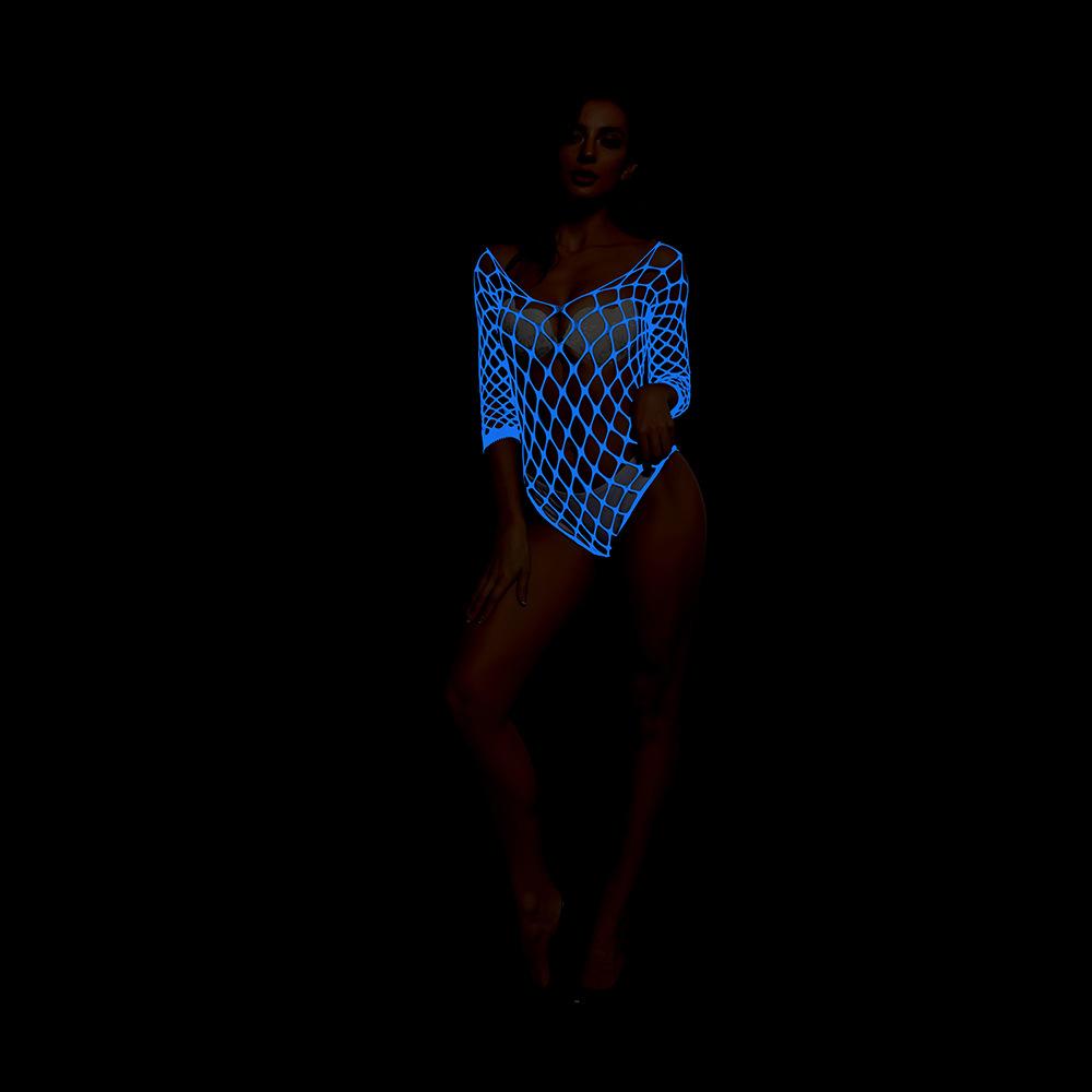 Sex underwear luminous blue light mesh one-piece luminous stockings three-point bikini long-sleeved y