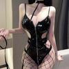 Sexy underwear, tight leather jacket, one-piece free passion suit, small chest shows big locomotive uniform temptation