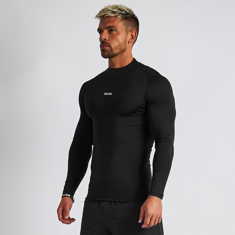 Muscleguys Herren Lauf-T-Shirts Herbst Kompression Fitness Enges Langarmshirt Joggen Gym Sportbekleidung Schnelltrocknende Sport-Rashguards