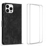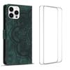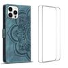 Für iPhone 15 Pro Hülle mit 2 Stück gehärtetem Glas WANLONFENG MTL Serie Mandala Leder Handyhülle