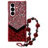 Für Samsung Galaxy Z Fold7 5G Hülle Steindekor Glitzer Leopard Spleißen Plüsch PC Handyhülle mit Handkette