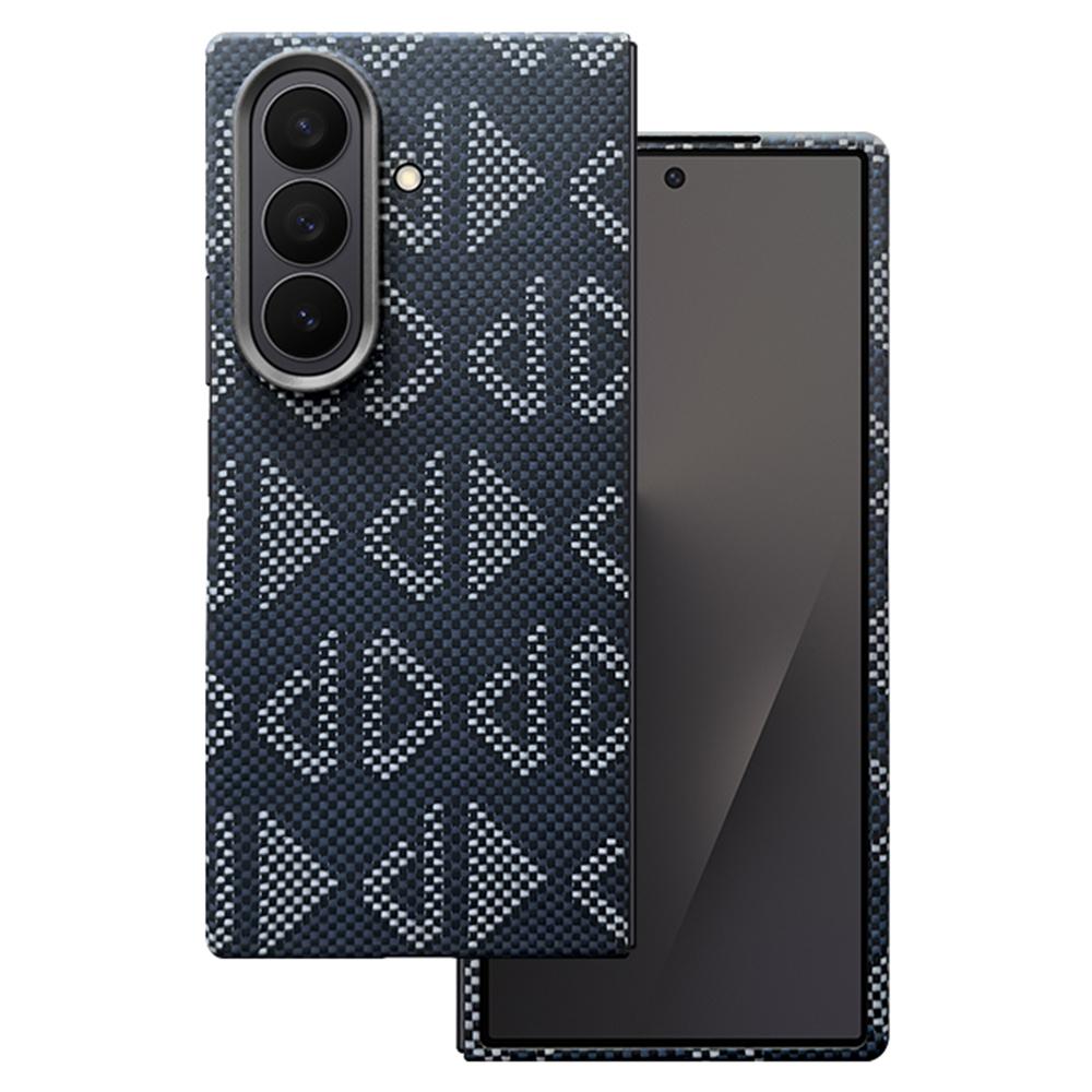 Für Samsung Galaxy Z Fold7 5G Magnetische Hülle Geometrisches Muster Aramidfaser Handyhülle mit Metall-Linsenrahmen/Frontrahmen