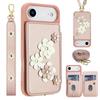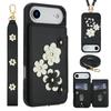 Für iPhone 17 Air Hülle Kartenfächer Lederbeschichtetes TPU Blume Handyhülle mit 2 Bändern