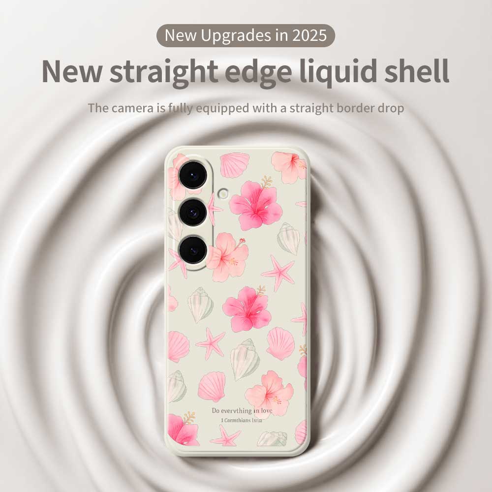 Für Samsung Galaxy S25 FE Hülle Schale Pfirsichblütenmuster Druck Gerade Kante TPU Handy-Rückseite