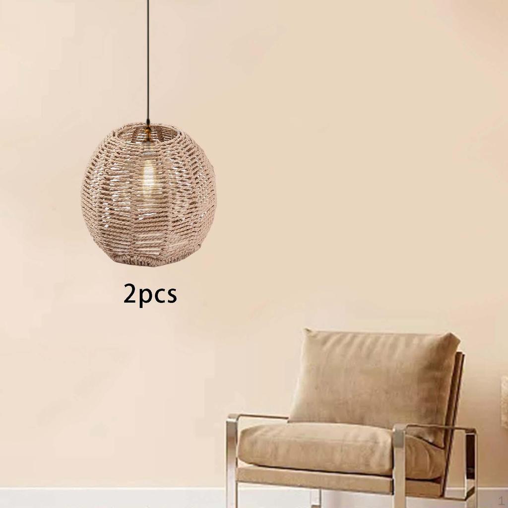 2Pcs Retro style Hand Weaved Pendant Lamp Shade Chandelier Bulb Cage Guard Ceiling Light for