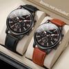 2 Stück Modisches Business-Uhren-Set Lässige Lederarmband-Quarzuhren für Herren Uhr Geschenk Reloj Hombre