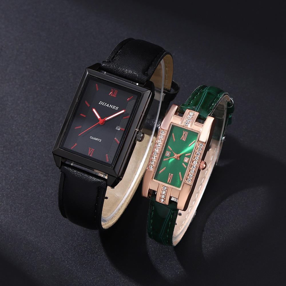2 Stück/Set Elegantes Paaruhr-Set Römisches Ziffernblatt Quadratisches Zifferblatt Schlichte Uhr | Formeller Anlass | Accessoire-Sets | Geschenk