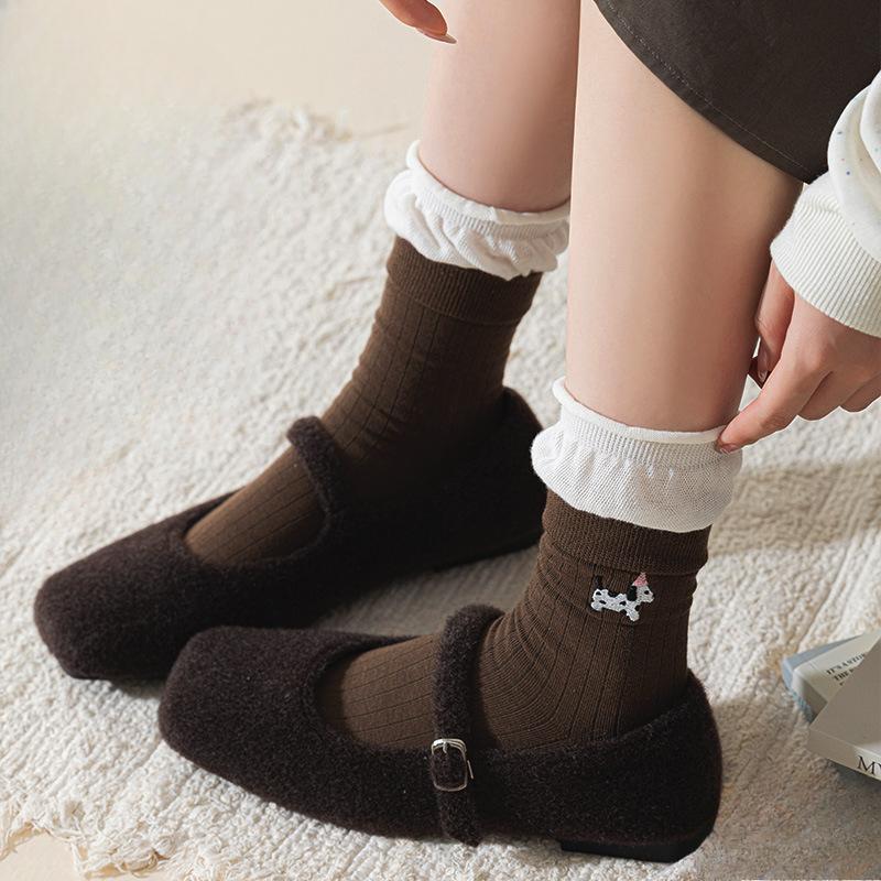 Damen Frühling und Herbst Cartoon Hund Bestickt In The Tube Frotteesocken