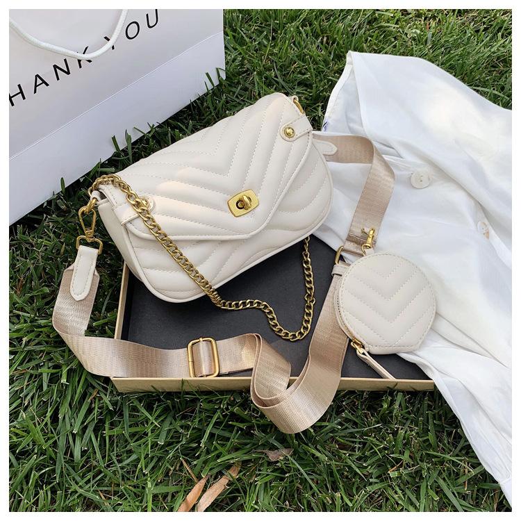 Herbst kleine Tasche Damen Tide Stickgarn Kette Damentasche breiter Schultergurt einzelne Schulter schräg zu tragen Kind- und Muttertasche