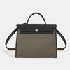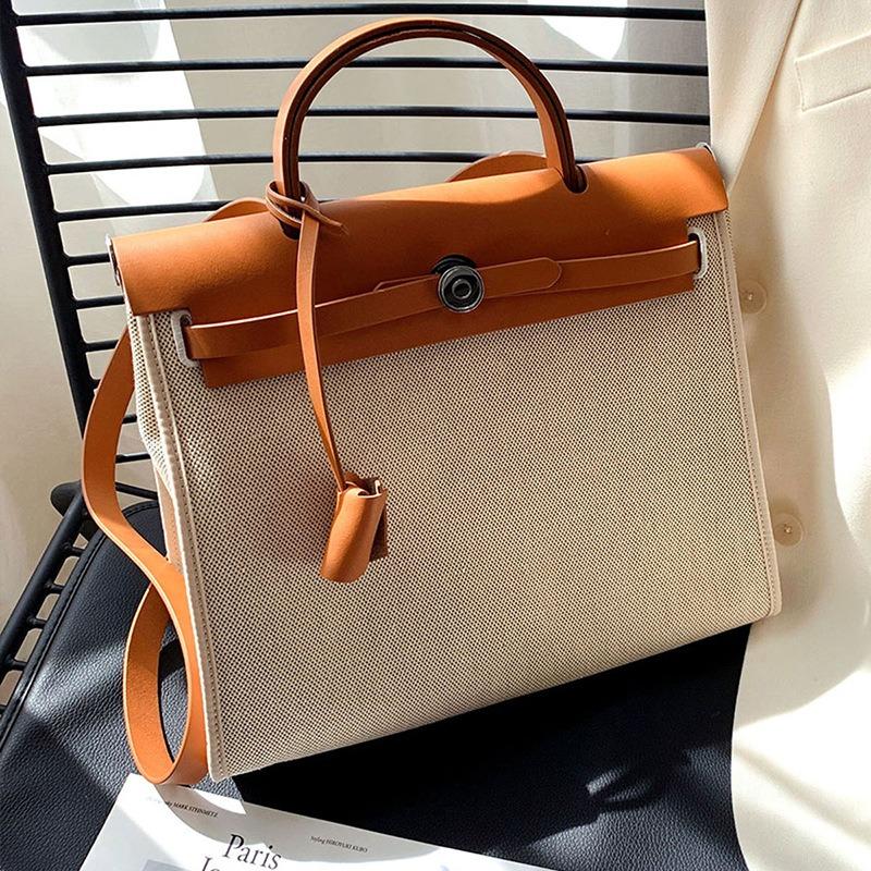 Tasche Rindsleder Canvas Farbblockdesign Große Kapazität Pendler Schulter Umhängetasche Handtasche