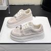 Dicksohlige perlmuttfarbene Lackleder kleine weiße Schuhe Damenschuhe 2025 neue Sport- und Freizeitschuhe erhöhte Schnür-Oldschool-Schuhe