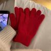 Solid Color Knitted Gloves for Women In Winter Windproof Cycling Warm Cold Protection Handguard Five Finger Finger Student Cycling Gloves Korean