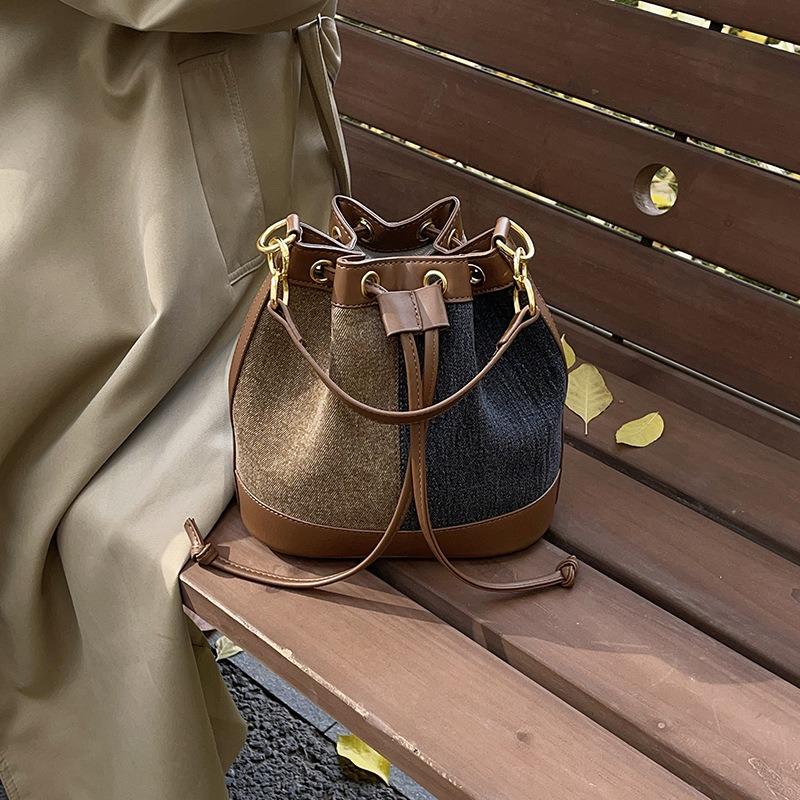 Neue Denim-Spleiß-Schulter-Bucket-Bag modische Pendler-Großraum-Umhängetasche modische Bucket-Handtasche Damen