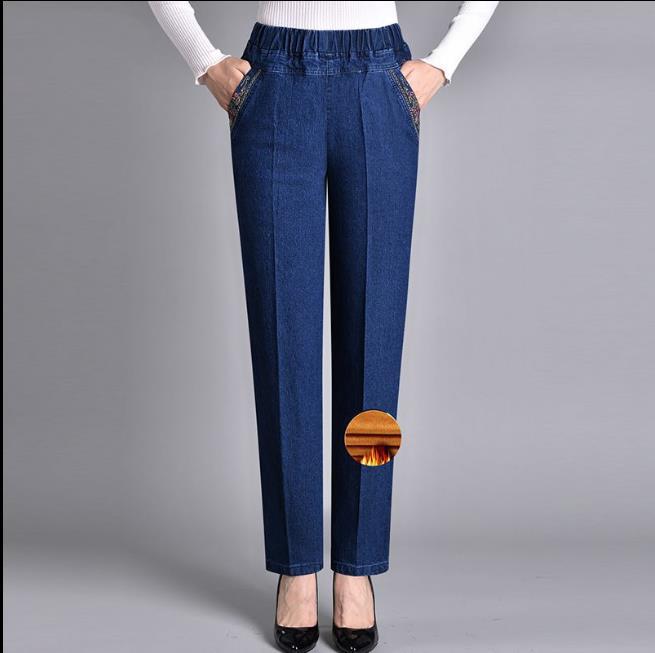 Herbst und Winter Übergröße Verdicken Modelle Damen Einfarbig Dünn Hohe Taille Abschnitt Gerade Elastische Jeans Lässige Hosen