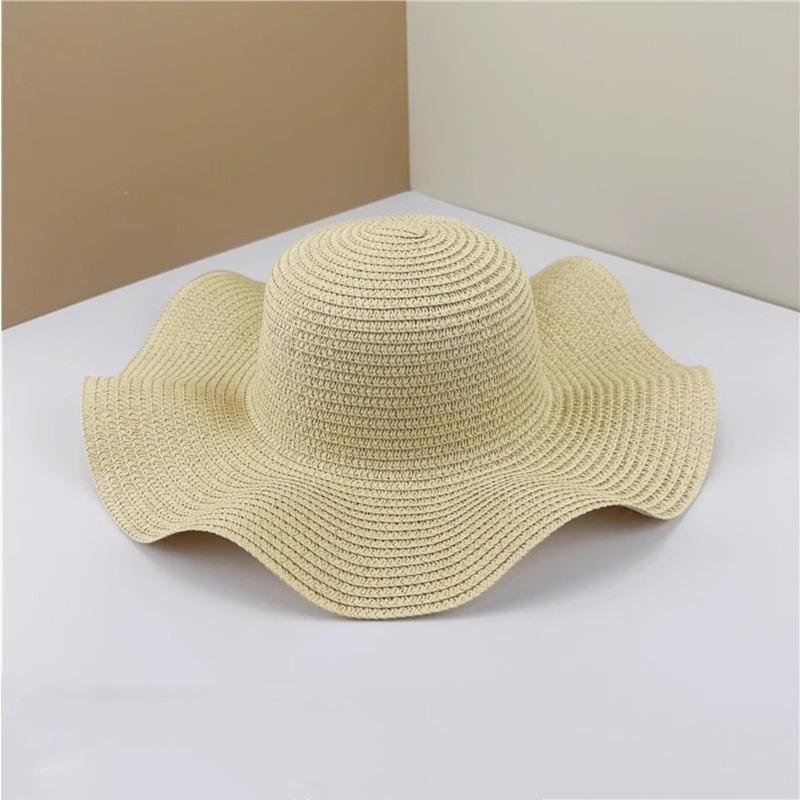 Wave edge lace bow straw hat women's summer brim sunshade sunscreen hat seaside hat hat embryo