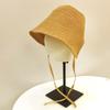 Spring and summer straw visor hat women's summer big head circumference strap bucket hat big brim sun hat