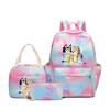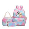 Bluey gleicher lässiger dreiteiliger Rucksack Schultasche Druck College-Stil Mittelschüler große Kapazität