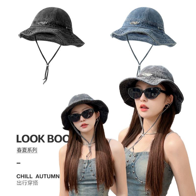 Frühling und Sommer neue Denim-Eimerhut Sonnenschutzhut Kinder großer Schirm Gesicht zeigend kleiner Sonnenhut