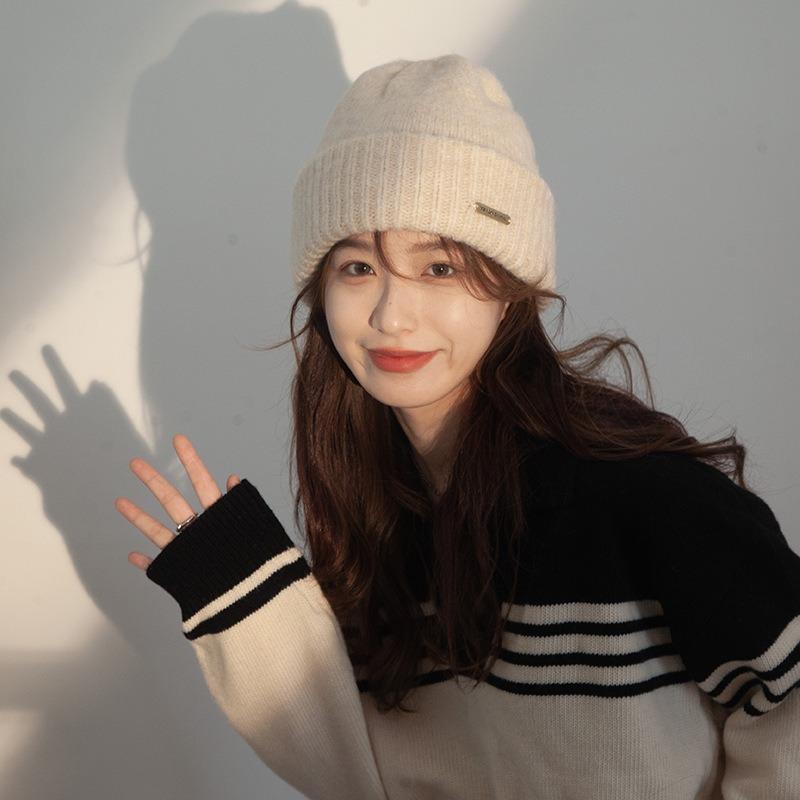 Großer Kopfumfang Wollmütze Damen Herbst und Winter Wollmischung Kälteschutzmütze Trendig Vielseitig Grau Locker Warm Gestrickte Mütze Herren