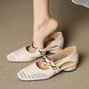 Mode 2025Net Flache Modesandalen Neu Sommer Eckige Zehen Atmungsaktiv Rutschfest Linie Knopf Jane Fischernetzschuhe Damenschuhe