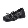 Mode Damen Mary Jane Schuhe Blockabsatz Gürtelschnalle Schleife Karree Zehenbereich Damenschuhe Kleid Party Flachmaul Retro Zapatillas De Mujer