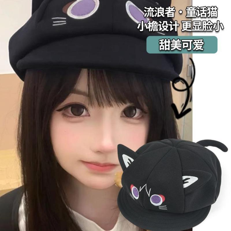 Katzenohren Baskenmütze Damen Herbst Winter cos Rangers Märchen Katze Achteckig Niedlich Schwarze Malermütze