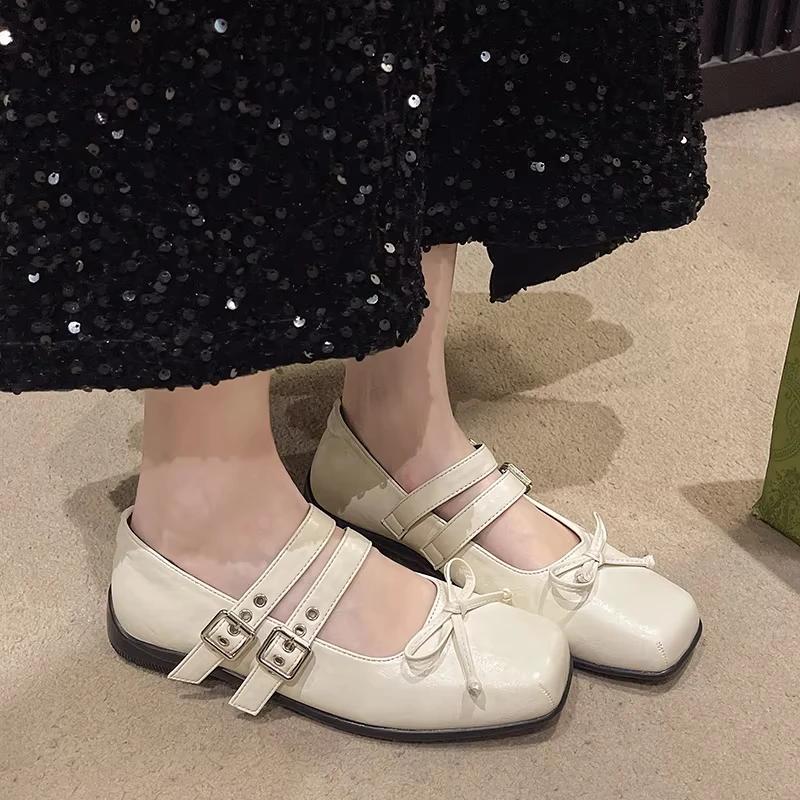 Mode Damenmode Einzelne Schuhe Frühling Neu Quadratische Zehenpartie Flacher Ausschnitt Schmetterlingsknoten Weiche Sohle Rutschfest Verschleißfest Flache Schuhe