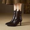 Mode 2025 Neu Herbst Damenstiefel Echte Lederschuhe für Damen Spitzschuhe Dünne Absätze Schuhe Reißverschluss Kurze Stiefel Super High Heel Stiefel