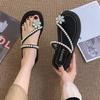 Modische flache Perlen-Sandalen Strass-Zehensandalen für den Strand Damen-Hausschuhe und Damen-Sandalen Stilvolles Angebot PVC Elegante modische Schuhe