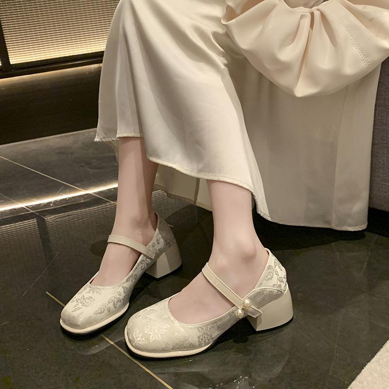 Mode Damen Neue Explosive Einzelne Schuhe Damen Frühling Alles Passend Mittelhoher Absatz Quadratische Sanfte Schuhe Damen