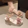 Modische Sandalen für Damen Outdoor Blumen Keilabsatz Plateau Damenschuhe Korea Lässig Hohe Qualität 2025 Luxus Asiatische Größe PVC Schuhwerk