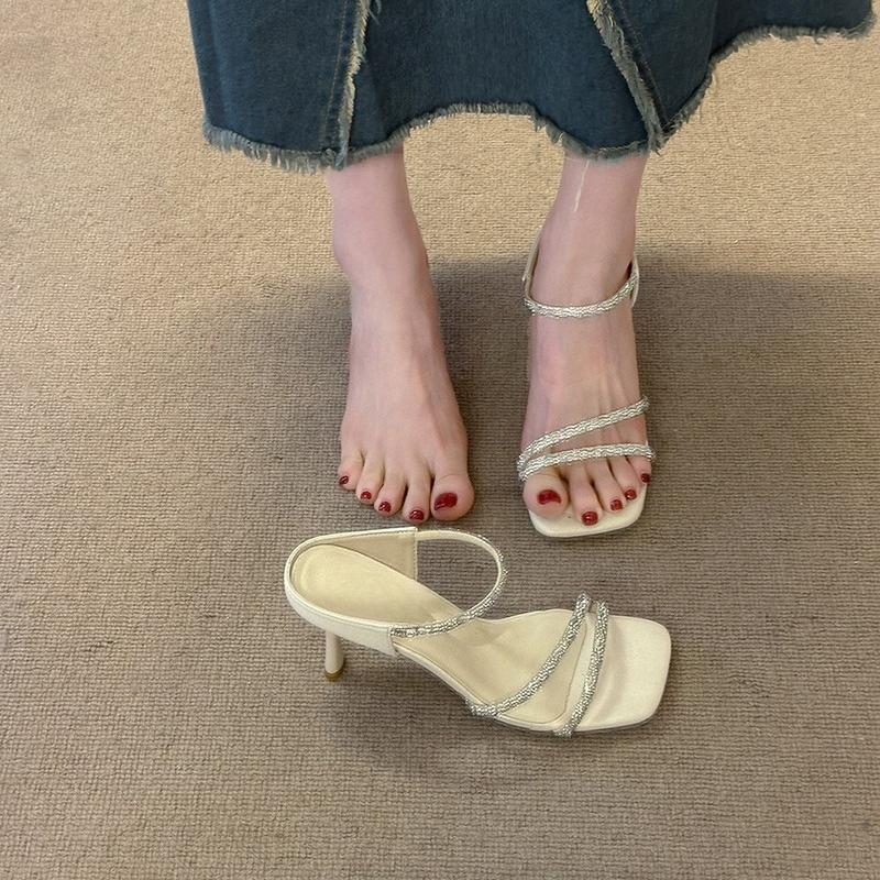 Modische Französische High-End Strass High-Heel Einteiler Hausschuhe für Frauen im Sommer 2025 Neu mit einem schlanken und eleganten Stil