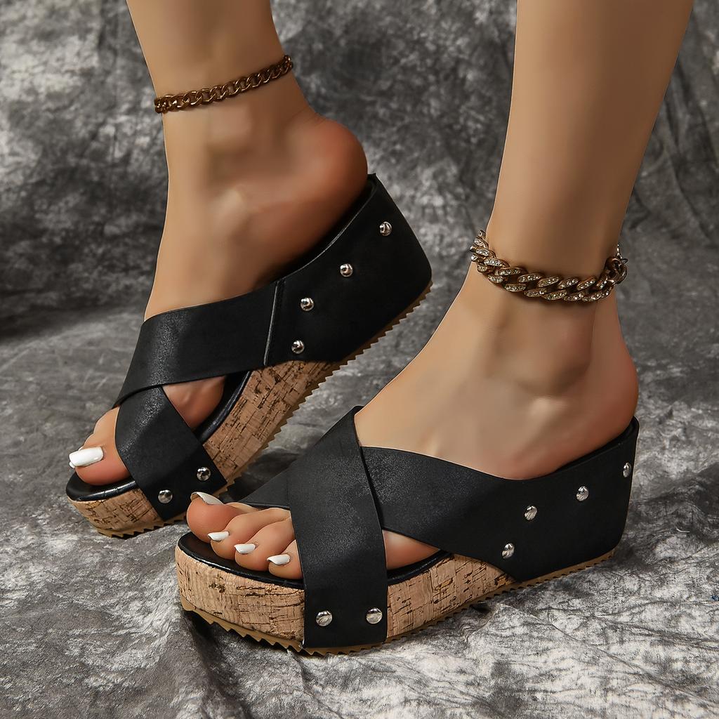 Mode Damen Hausschuhe 2024 Neue Sommer Schuhe Damen Zehenfrei Rom Hausschuhe Lässige Keilabsatz Plateau Sandalen Pantoletten Damen Zapatos De Mujer