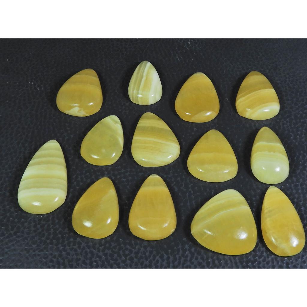 257Cts. Natural Yellow Lace Agate Pear Cabochon Loose Gemstone 13Pcs Lot C-236