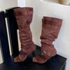 Mode Damen Zehenfrei Schuhe Damen Sandalen Stiefel Mit Dünnen Absätzen Schuhe Quadratische Zehenpartie Mode Flock Damen Kniehohe Stiefel Schuhe Pumps