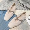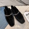 Modische Strassketten Nerzfell flache Schuhe für Damen eckige Zehenpartie warme Plüsch-Mokassins Kristallband pelzige Slipper Loafer große Größe 43