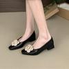 Mode Neueste Schwarzes Leder Blumendekorationen Ballerinas Damen Zehenschuhe Slipper Einzelne Schuhe 2025 Mary Janes