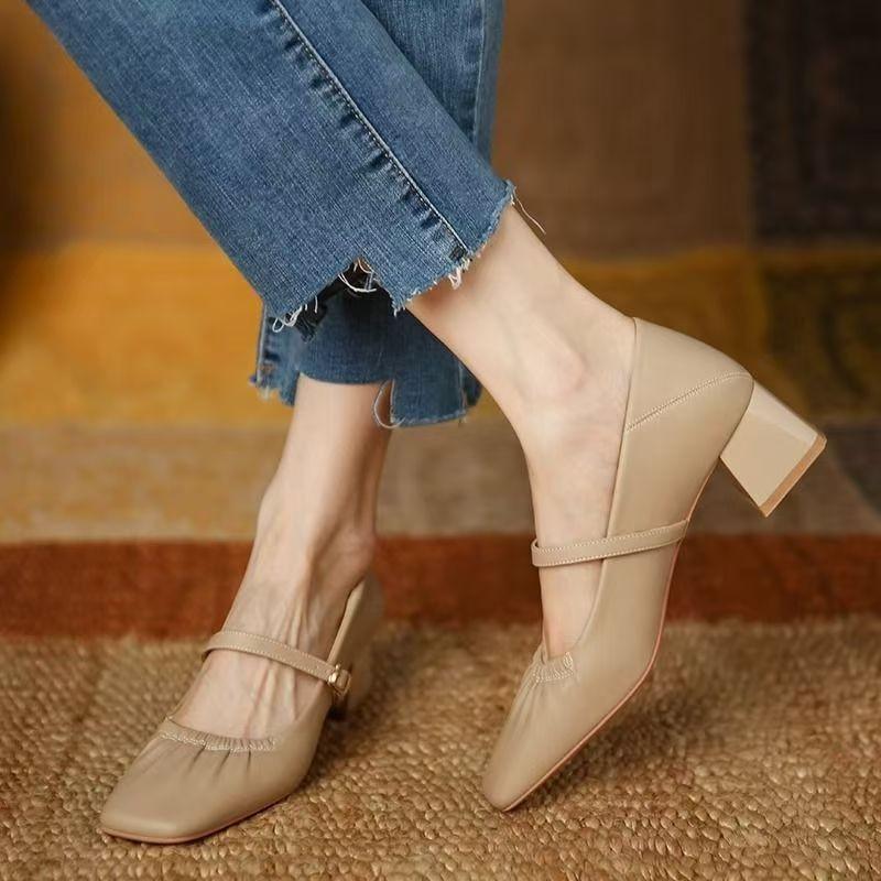 Mode Damenmode Pumps Frühling Herbst Neu Mary Jane Damen Eckige Zehenpartie Flache Einzelne Schuhe Leder Kleid Party Klobige Absätze Schuhe
