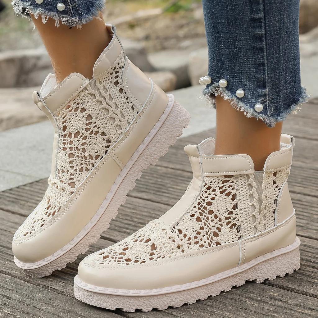 Mode Damenstiefel 2025 Neue Sommer Dünne Atmungsaktive Sandalen Damen Vielseitige Kurze Stiefel Reißverschluss Mesh Aushöhlen Offene Schuhe Zapatos De Mujer