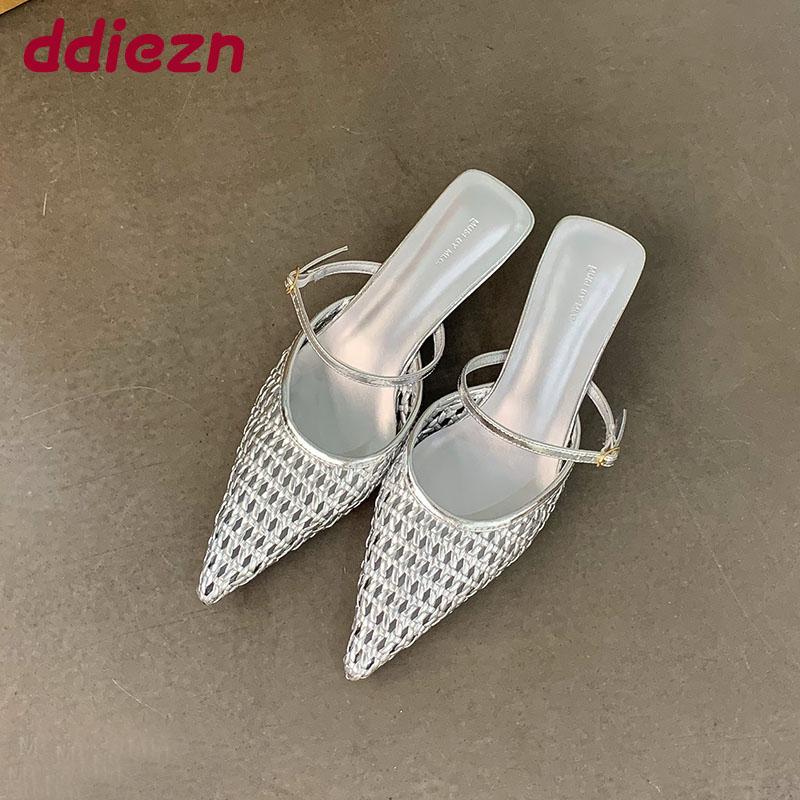 Mode Mode Weben Flache Damen Niedriger Absatz Sandalen Schuhe Weibliche Pantoletten Spitzschuh Damen Absatzsandalen Schuhe Pantoletten Schuhwerk