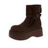 Mode Herbstmode Plateau Einzelstiefel Damen Runde Zehen Wildleder Quaste Reißverschluss hinten Rutschfest Verschleißfest Kurze Stiefel