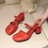 Mode 2025 Neue Halbzehen-Halbpantoletten Damen Dickabsatz Mantel, Modische Sommer High Heels Coole Flip-Flops